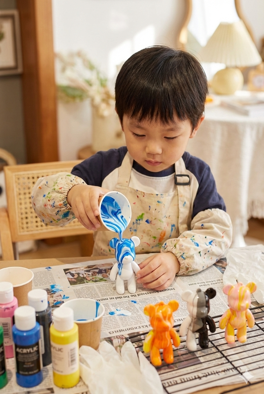 流體熊不只是完成一件作品,更是親子互動的媒介。透過一起選色、觀察顏料流動,家長能自然地與孩子交流,提升陪伴品質。