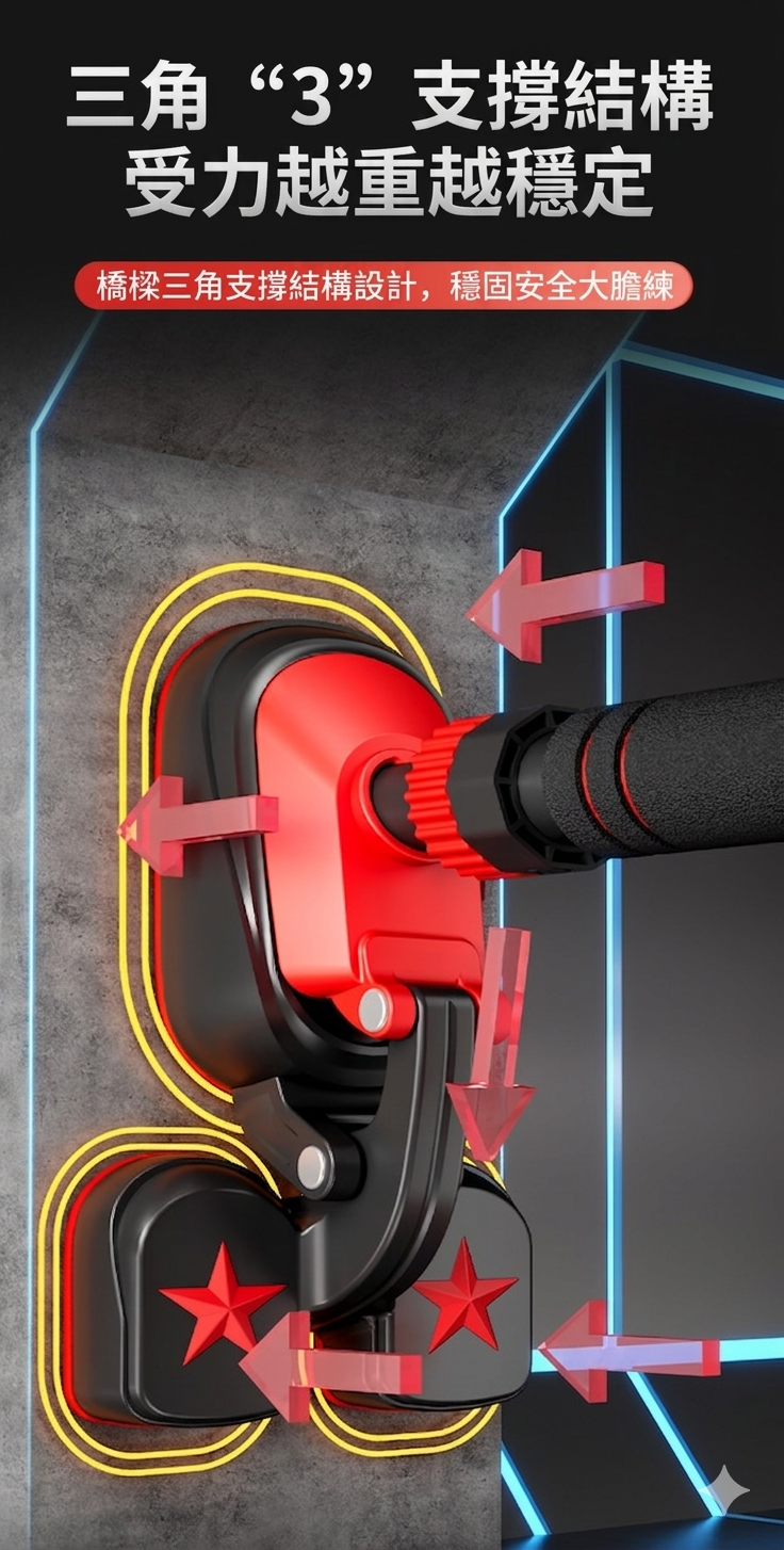 ※向下力越大,往牆上擠的力越大,單槓越牢固